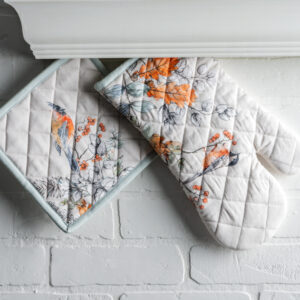 Maison d’ Hermine 100% cotton Ovenmitt & Potholder set – Whitish Shabby chick