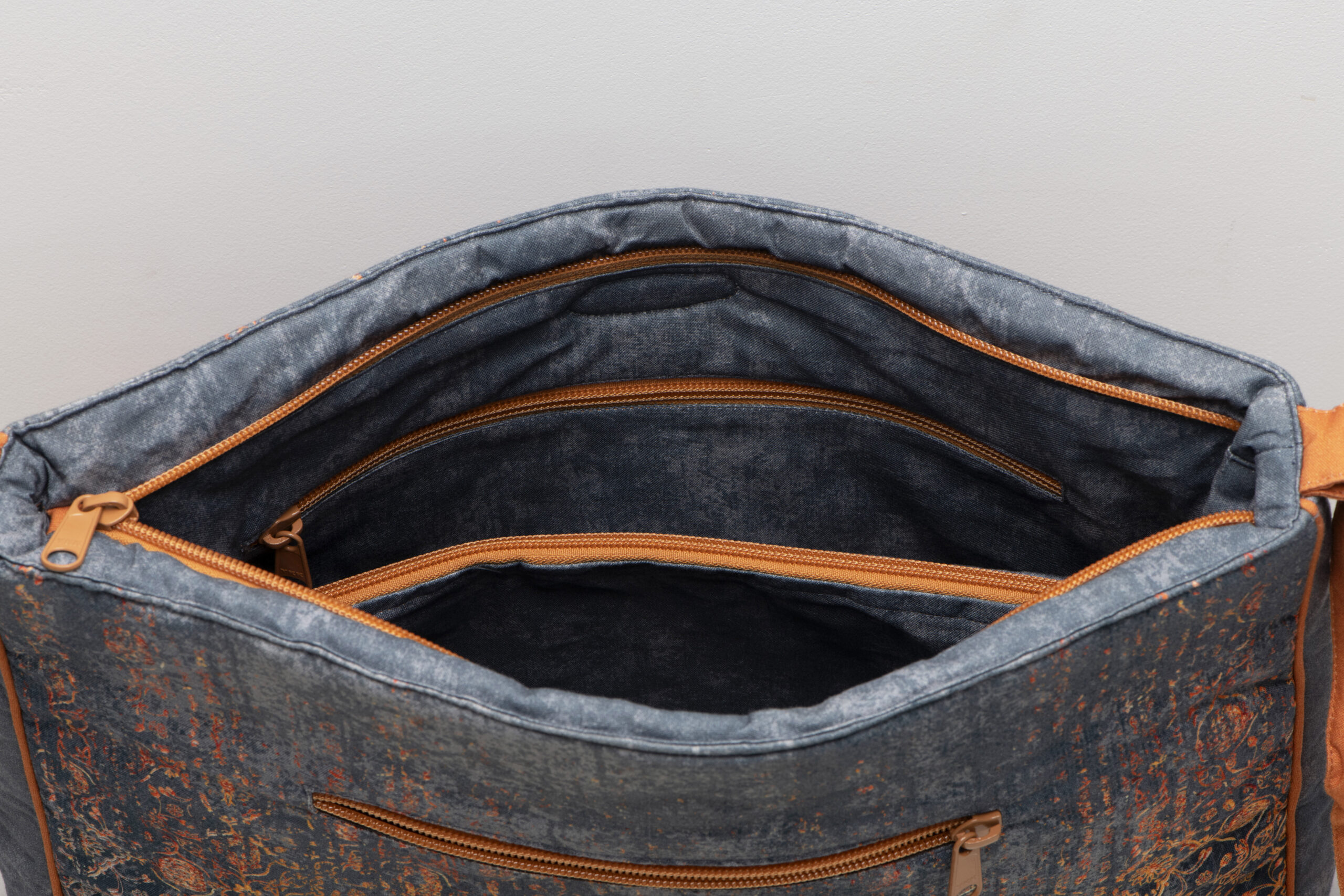 PRODUCT FEATUERES: INTERIOR: Two slip pockets and a large zippered pocket. EXTERIOR: Zippered back pocket. Zip-top closure on main compartment.Features sturdy and durable YKK zippers throughout the bag.