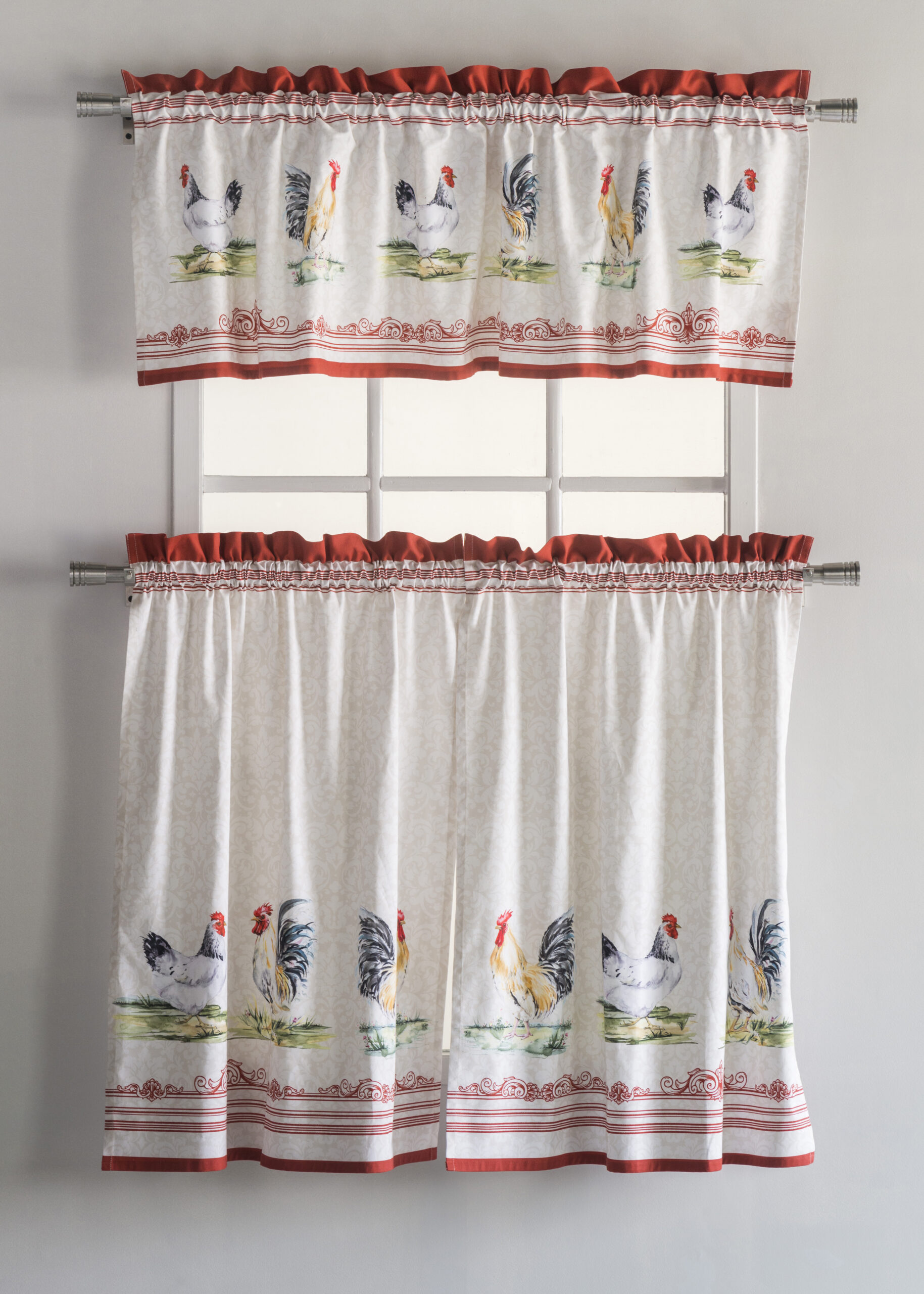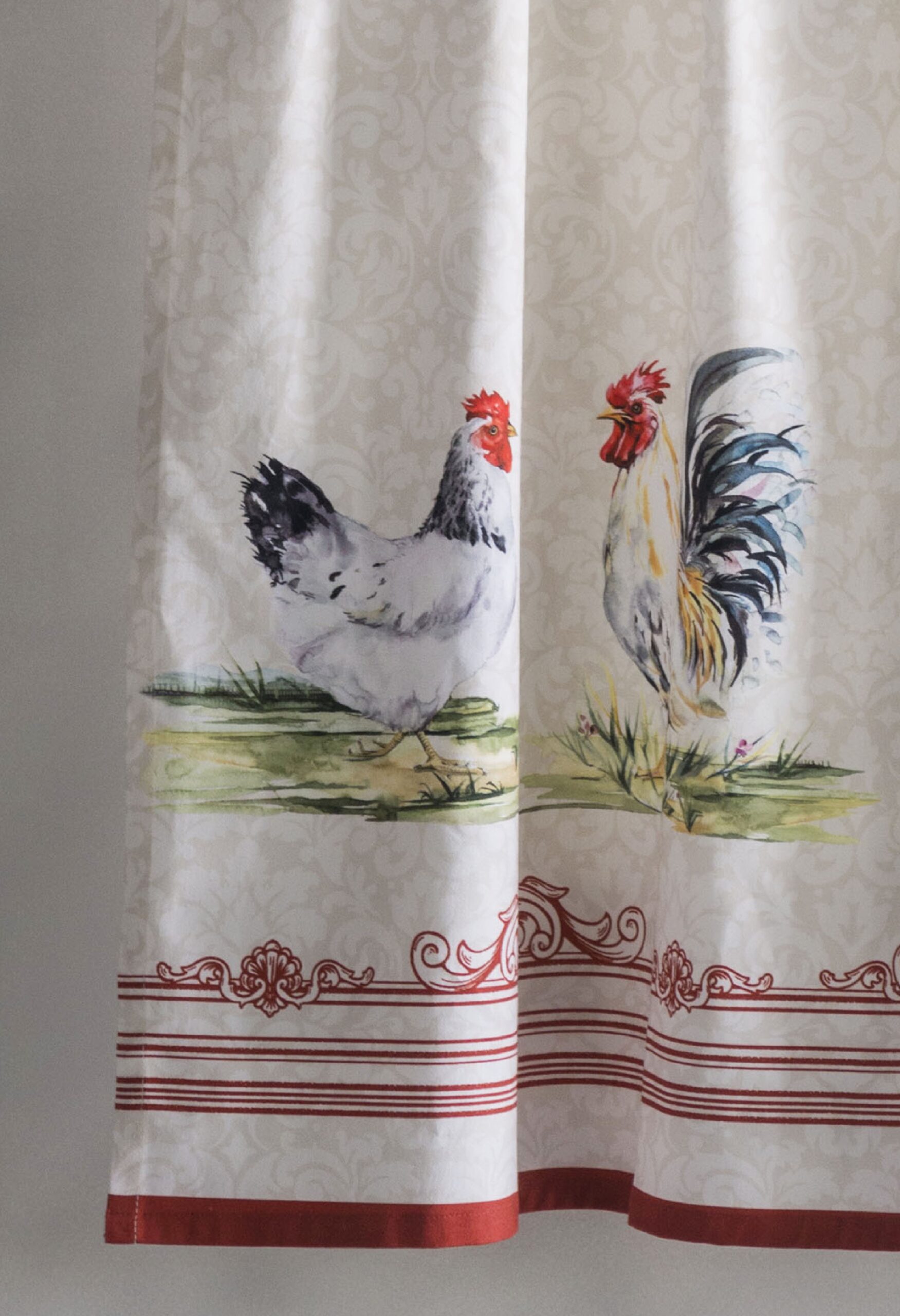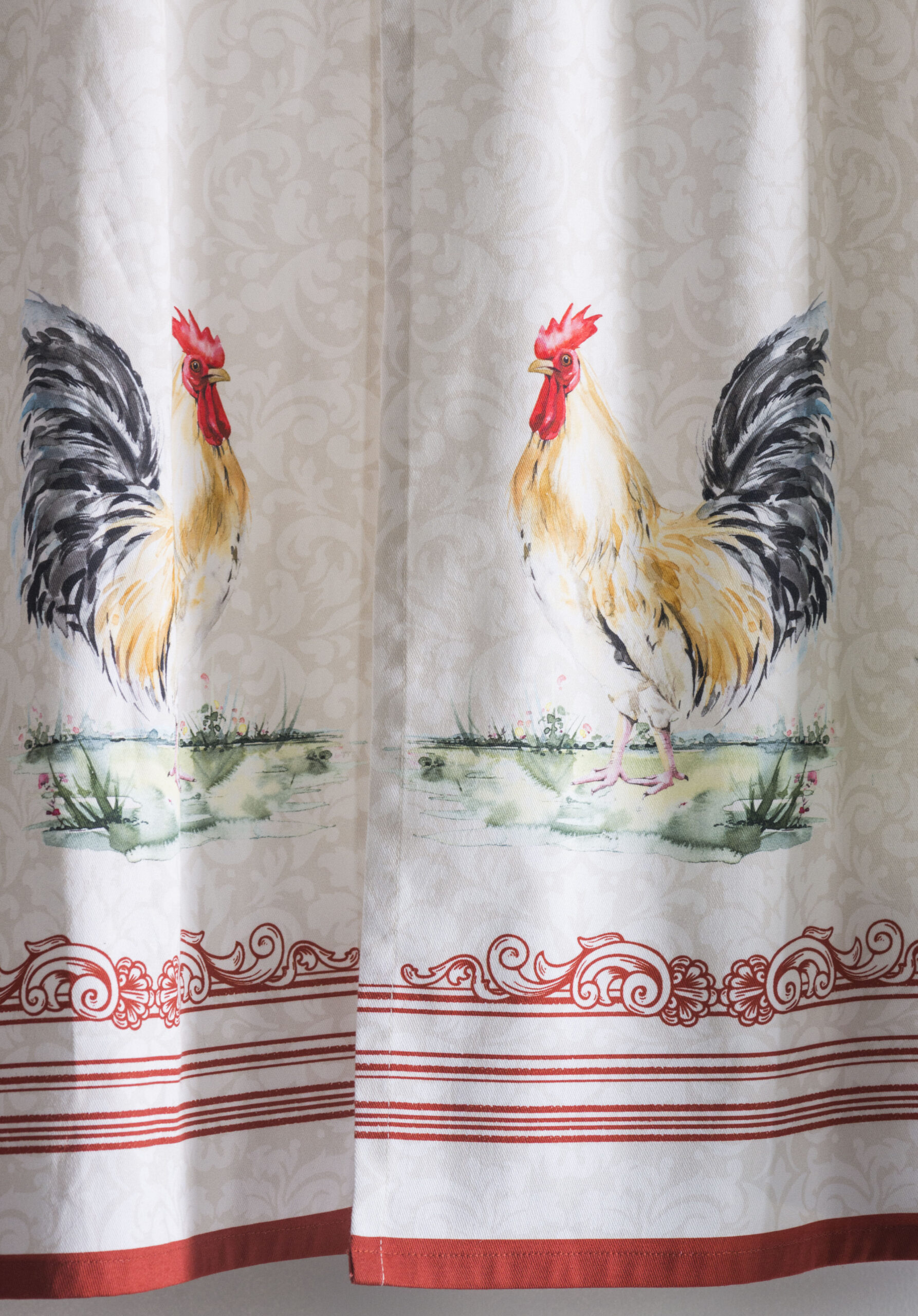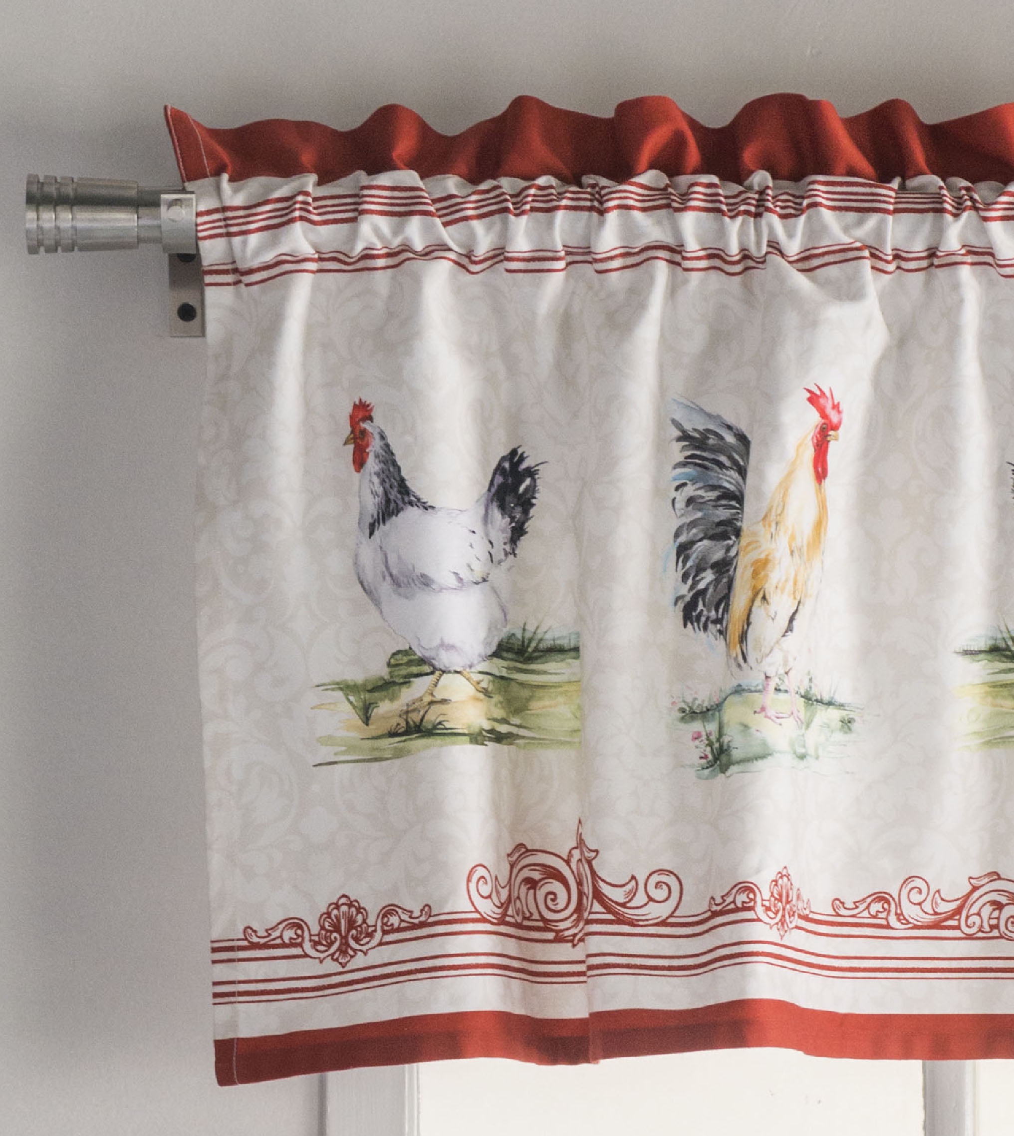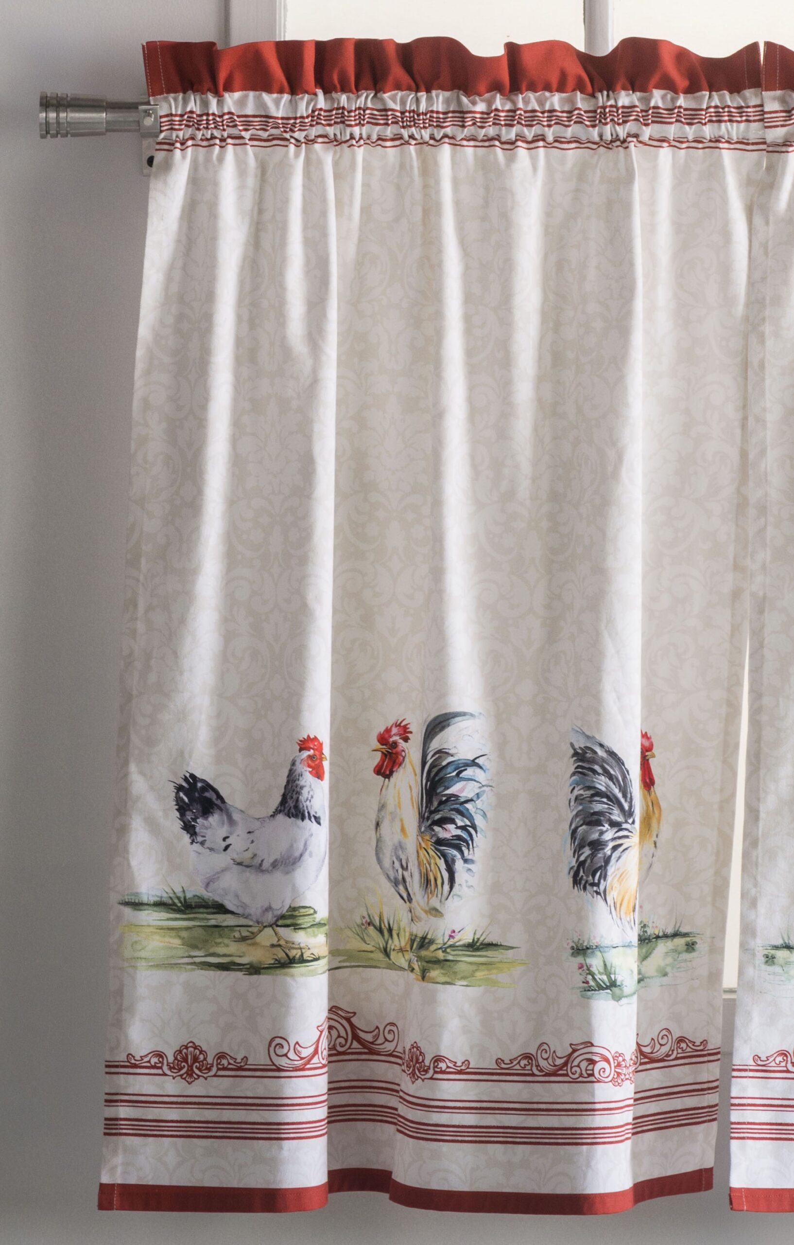 UNIQUE DESIGN: The Campagne collection in inspired by the Gallic Rooster, the unofficial symbol of France since the Renaissance. This Rooster emblem, also found in the Louvre and Versailles, is also a sign of faith and hope.Rod pocket makes it easy to hang and give a new look to you Kitchen.