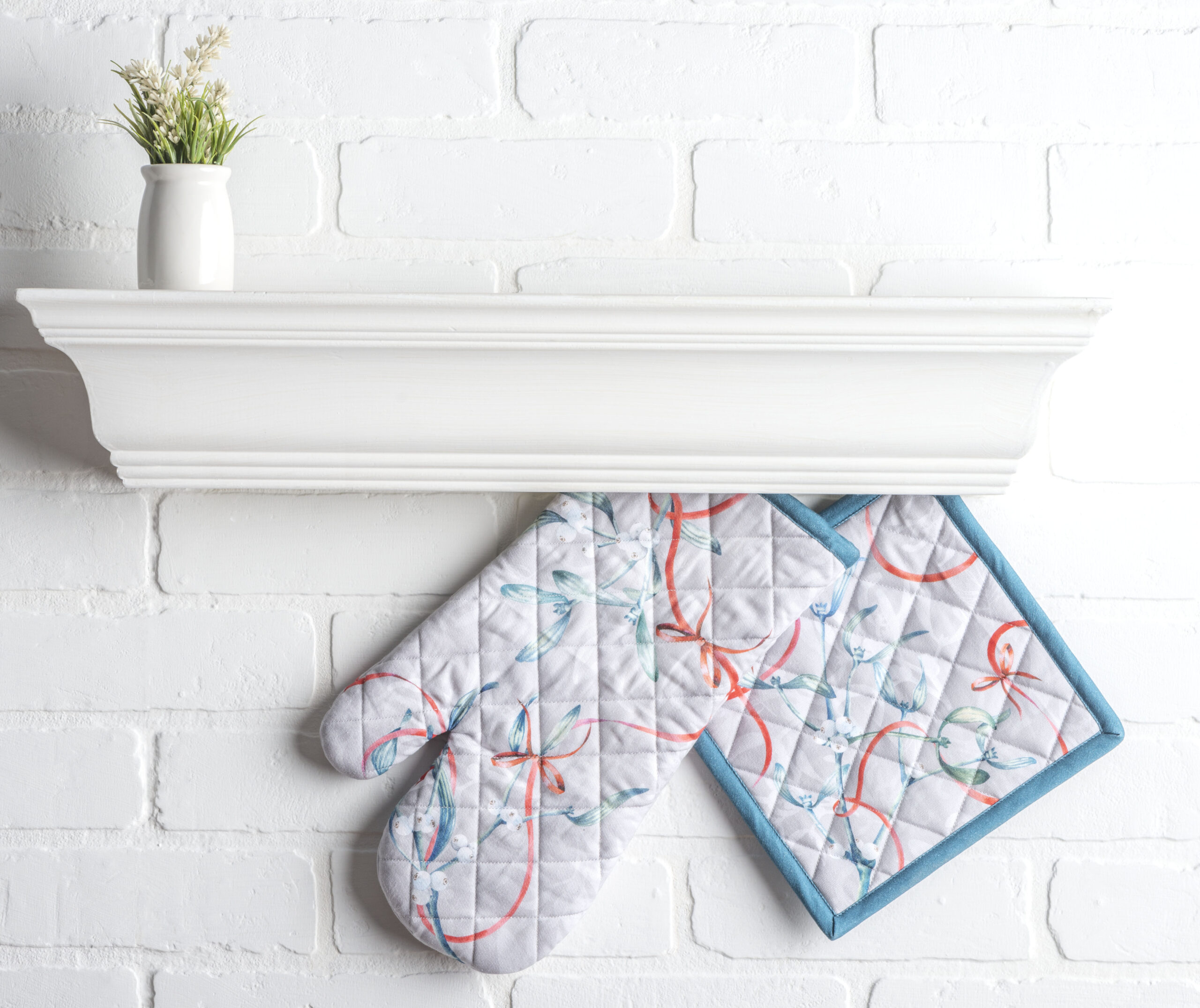 PACKAGE INCLUDES: Maison d’ Hermine package includes 1 Oven Mitt sized 7.5″x13″ and 1 Pot Holder sized 8″x8″.