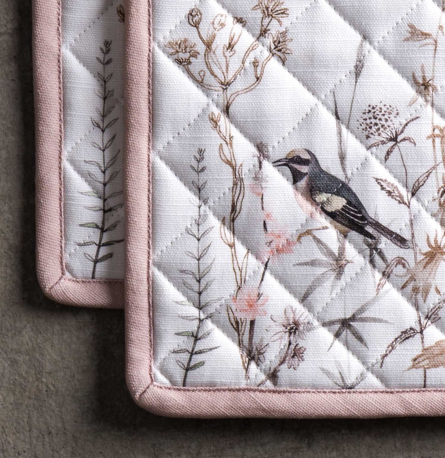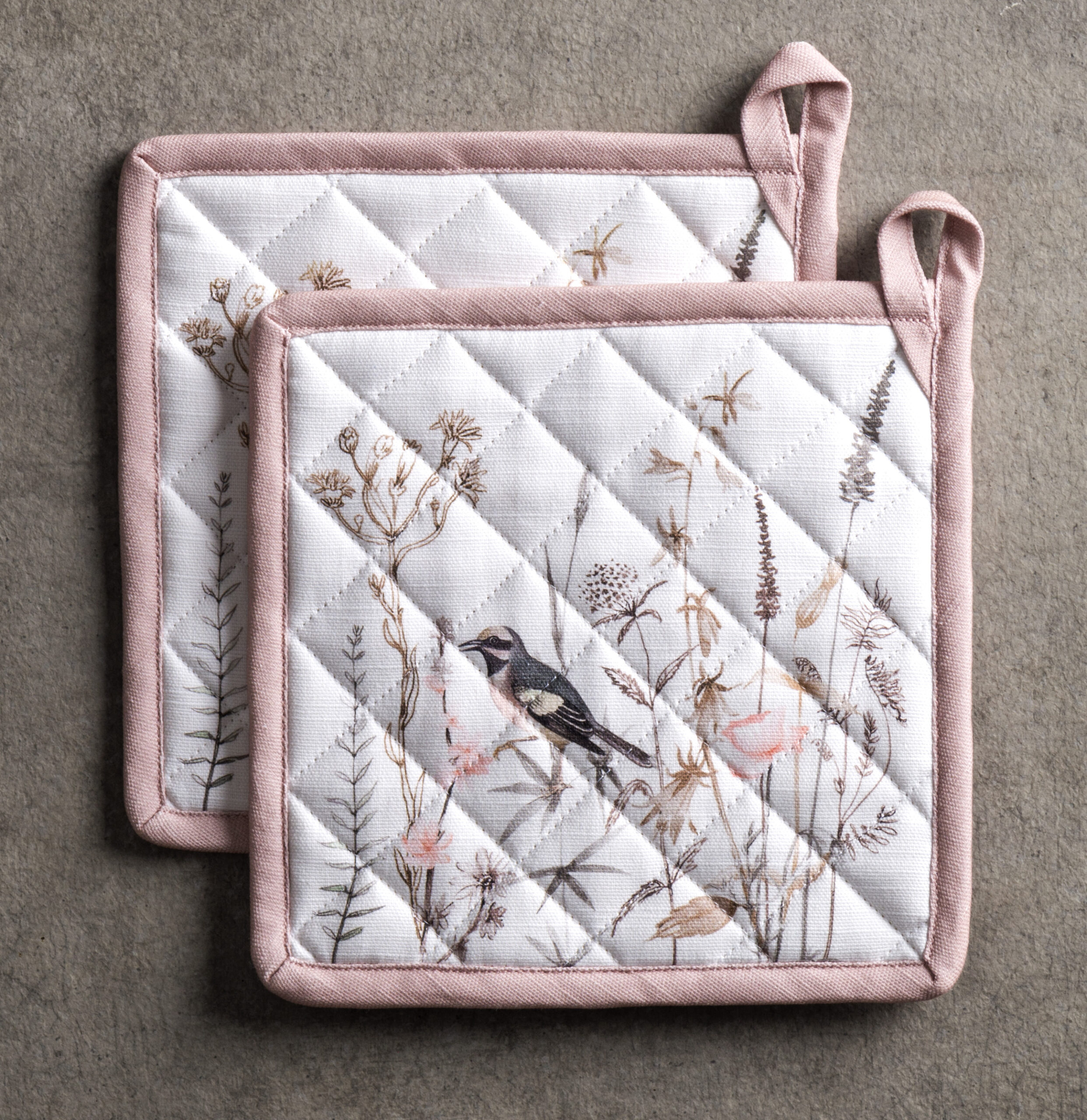 Maison d’ Hermine 100% cotton Potholder set – Meadow Florals – brown