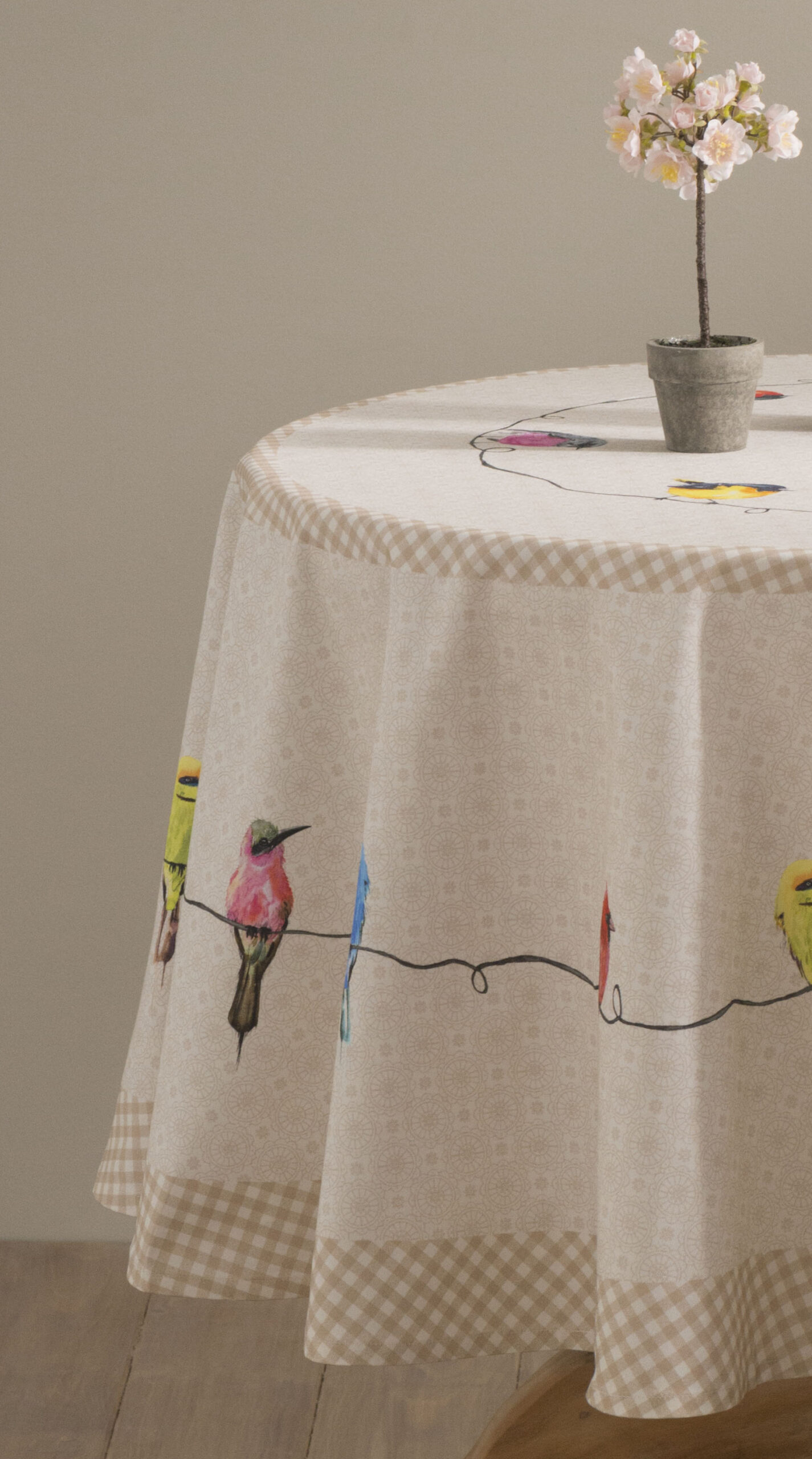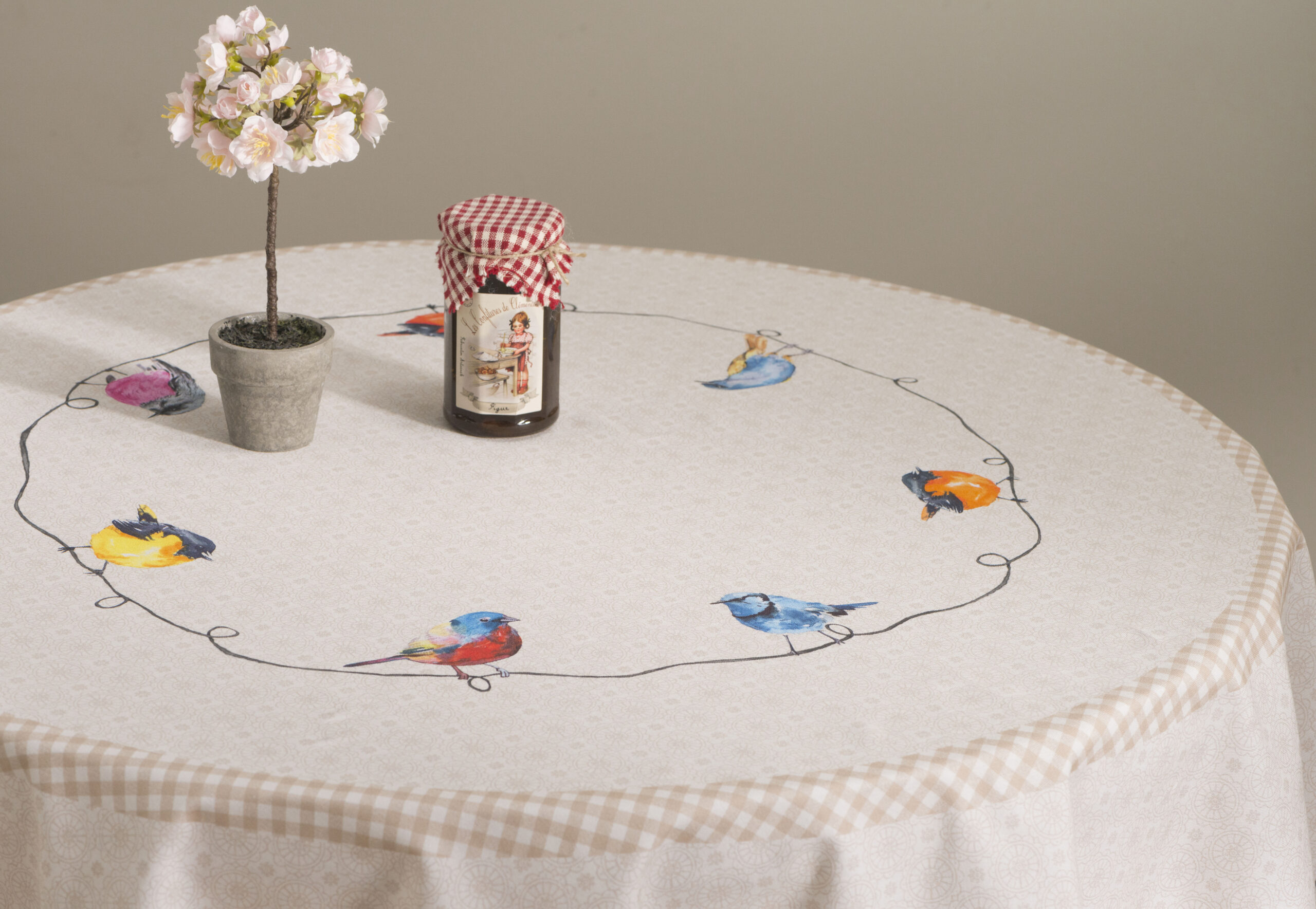 Maison d’ Hermine Round Tablecloth 100% Cotton – Birdies on Wire