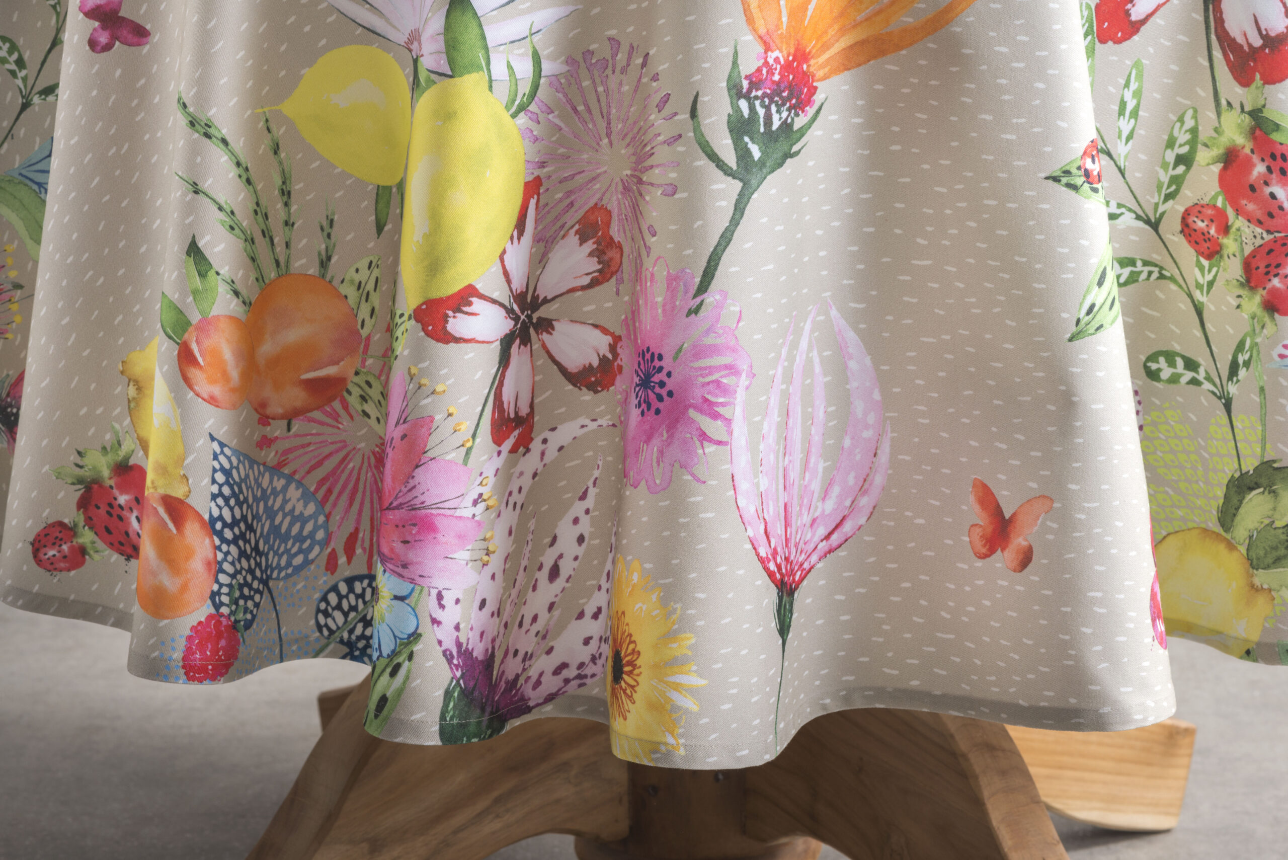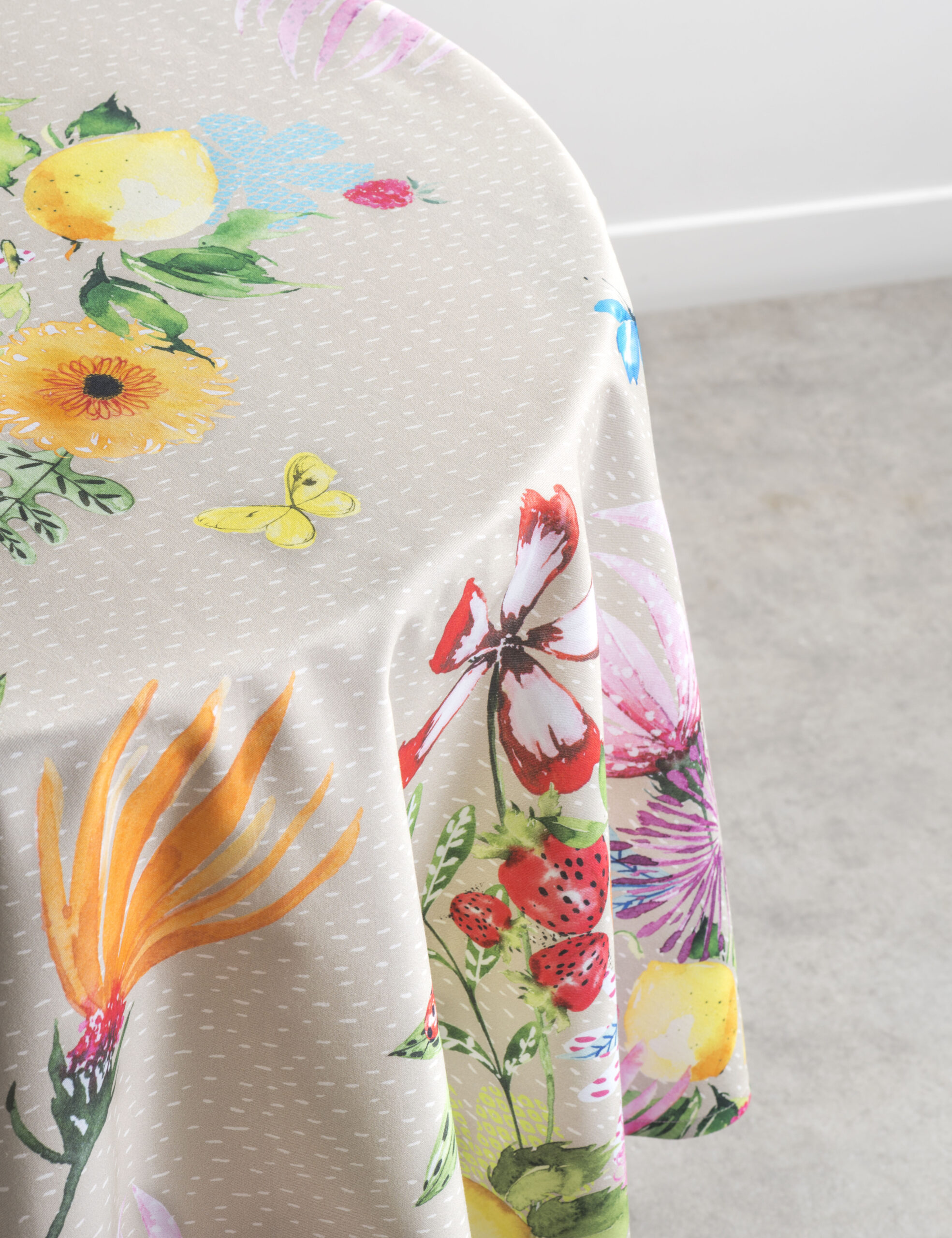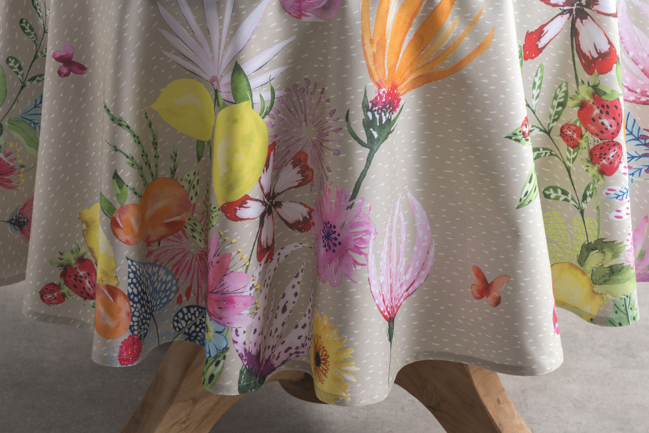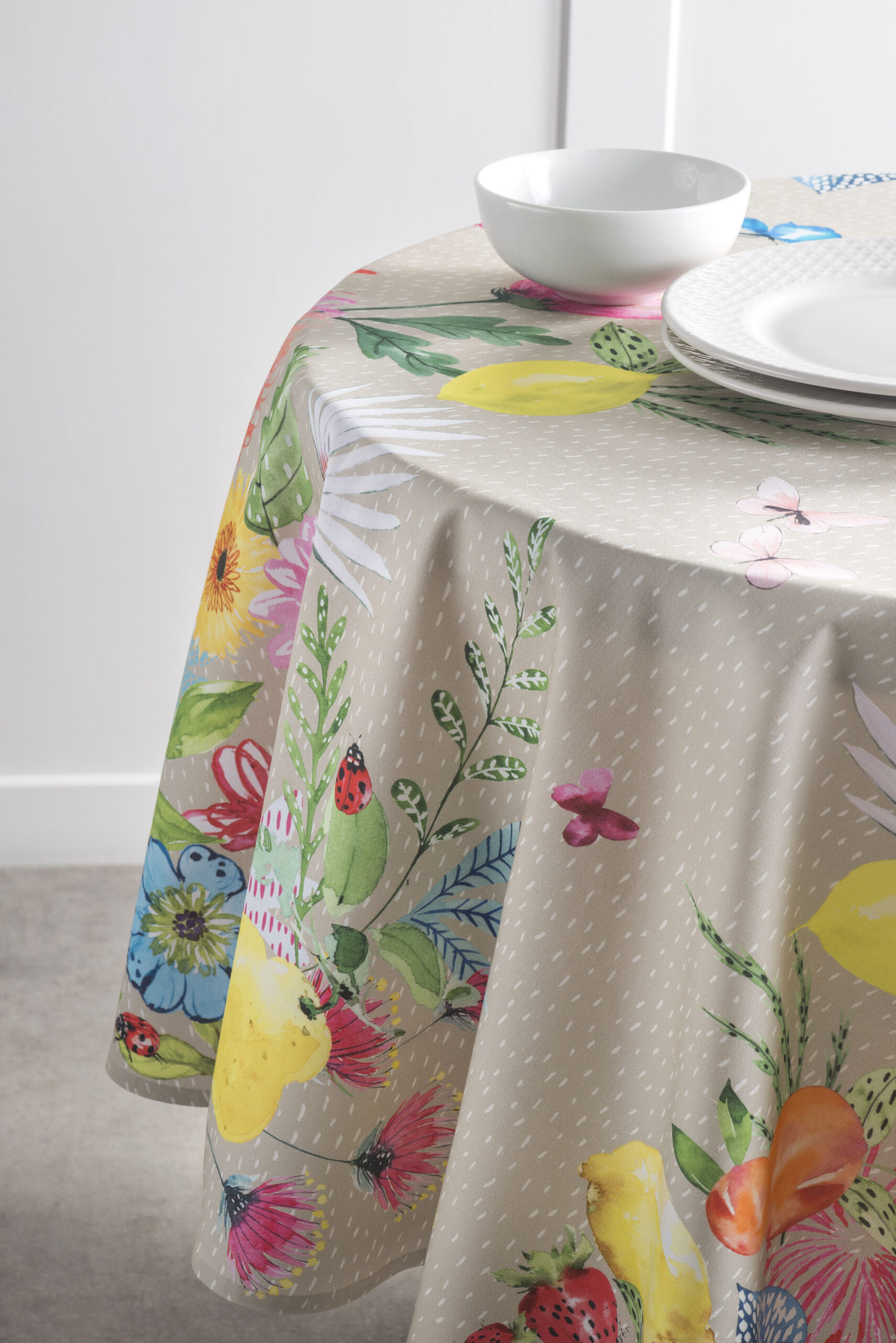 Maison d’Hermine 100% cotton Round Tablecloth – Jardin D’Ete – Fog